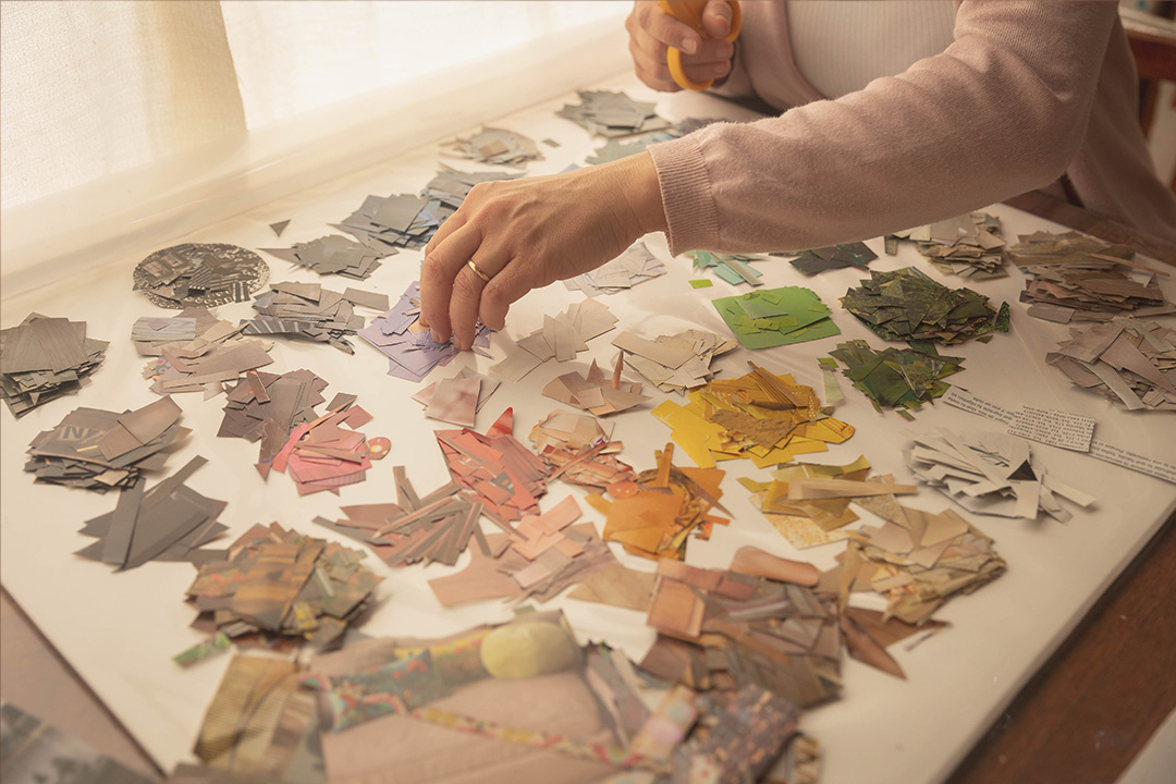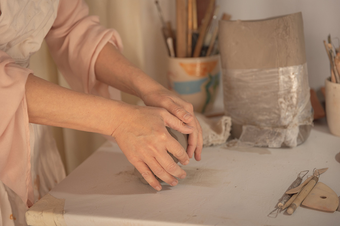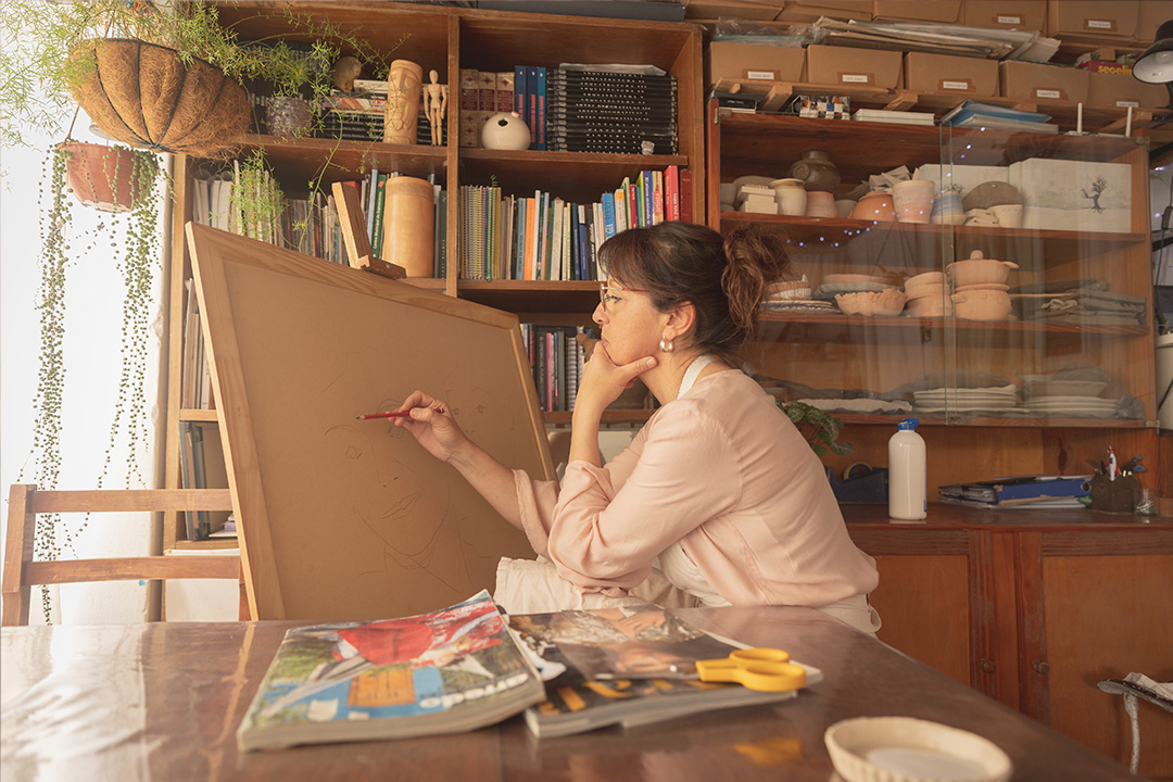 Trabajo como profesora de Arte en escuelas primarias, practico el oficio de la alfarería, modelo esculturas y utensilios de cerámica bruñida. Desde el año 2016 realizo collages.